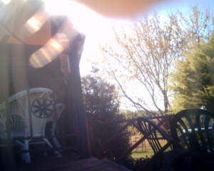 Aha ! Watching the bird house for some fun... (see the cat protection on the rod)
