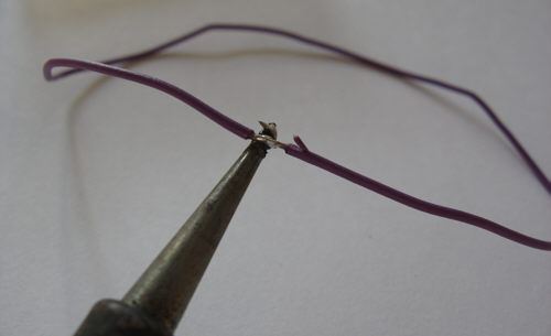 Step 6 - Now solder the strap for the collar mounting together. The wire length is approx. 21-23cm (8.3-9 inch), dependig on how close the camera should be on the collar. Schritt 6 - Jetzt den Riemen zur Befestigung am Halsband zusammenlöten. Die Drahtlänge ist ca. 21-23cm, abhängig davon wie eng die Kamera am Halsband sein soll.
