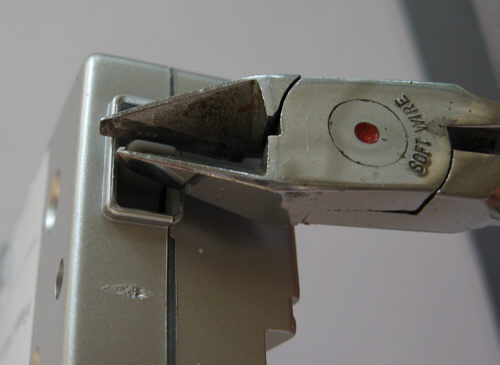 Step 11 - Then cut also the end of the lever of the manual focus. Schritt 11 - Dann noch das Hebelende des manuellen Fokus abzwicken.