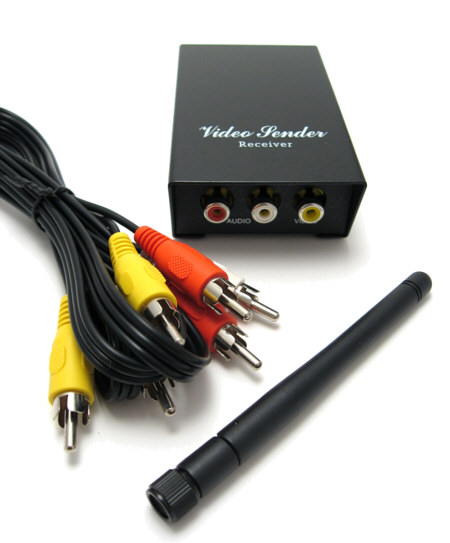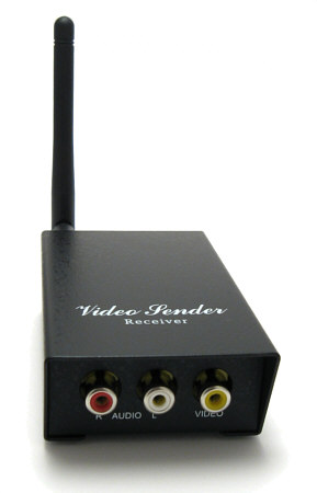 High quality receiver station. Receives a video signal from the 2.4GHz or 5.8GHz IMS band and outputs video signal and 2 audio channels to a TV or a PC with Video input. Selectable channels. Contains: Receiver, antenna, cables.