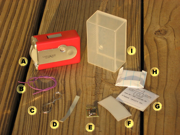 Der Bausatz enthält alles was man benötigt um eine eigene CatCam, DogCam, SpyCam oder wie auch immer selbst zu bauen. Vielleicht haben Sie ihre eigene Vorstellung von der CatCam oder vielleicht möchten Sie ein wenig durch den Selbstbau des Gerätes lernen - dann ist dieses Set die richtige Wahl.